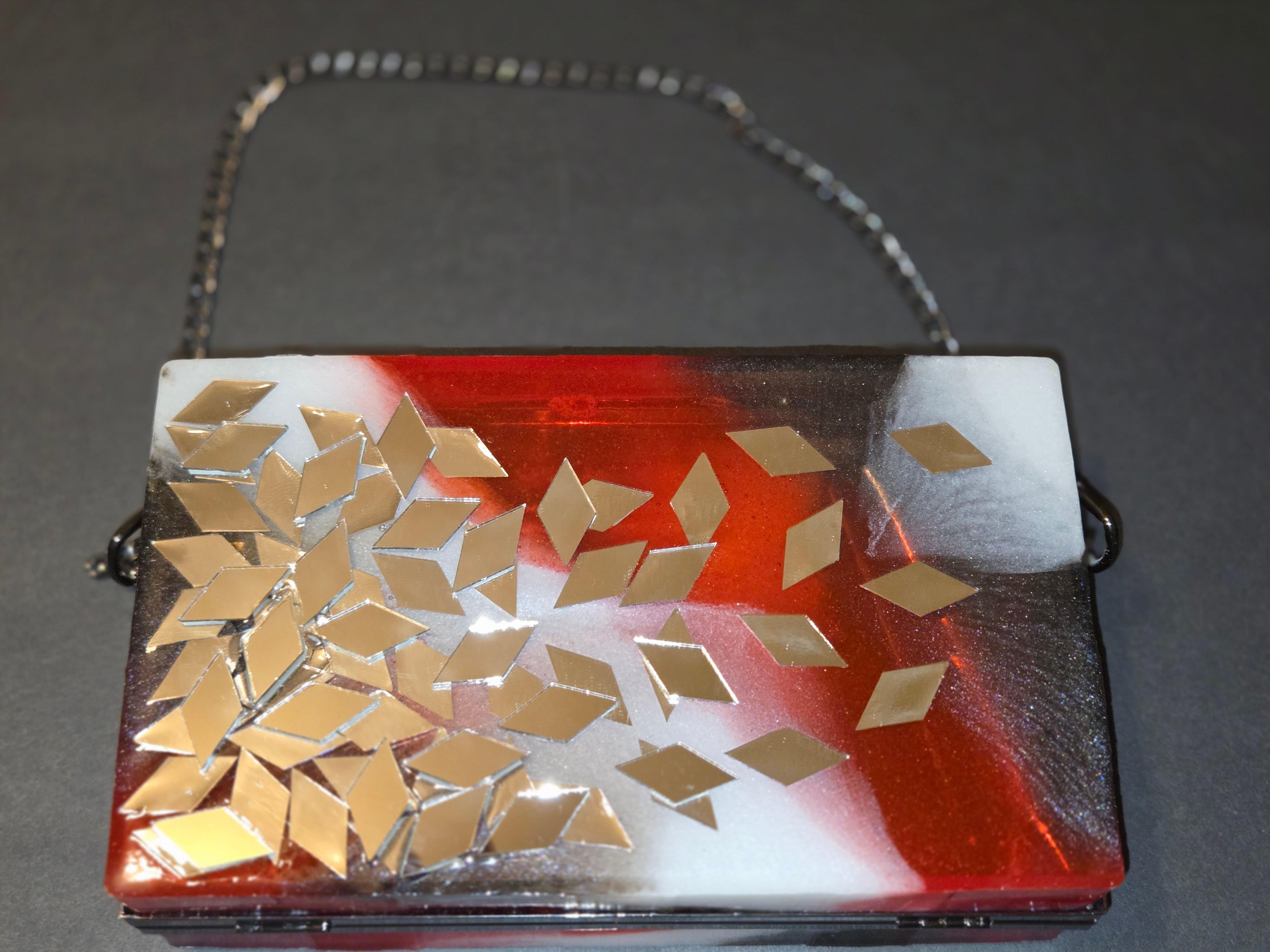 Beautiful multi-color rectangular clutch purse with broken mirror pieces.