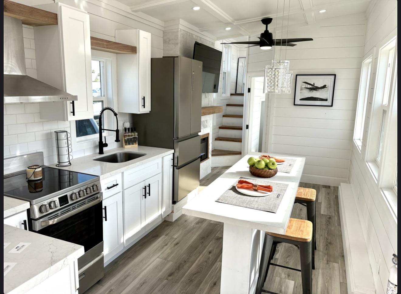 This custom-built 2025 Tiny Home comes straight from California, designed for style, comfort, and functionality. With 340 sqft, 3 bedrooms, and space to sleep up to 6, this model blends high-end finishes with tiny home efficiency. Perfect for full-time living, Airbnb rental, or a cozy vacation retreat.