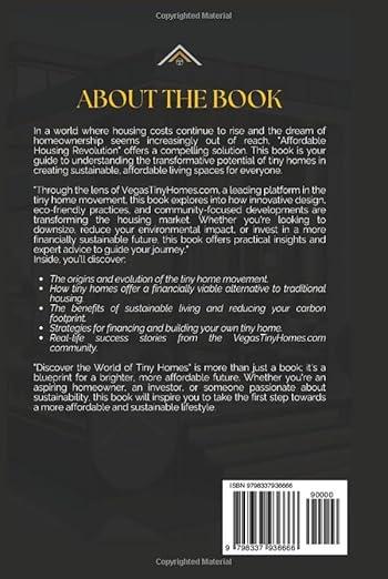 "Through the lens of VegasTinyHomes.com, a leading platform in the tiny home movement, this book delves into how innovative design, eco-friendly practices, and community-focused developments are transforming the housing market. Whether you're looking to downsize, reduce your environmental impact, or invest in a more financially sustainable future, this book offers practical insights and expert advice to guide your journey."