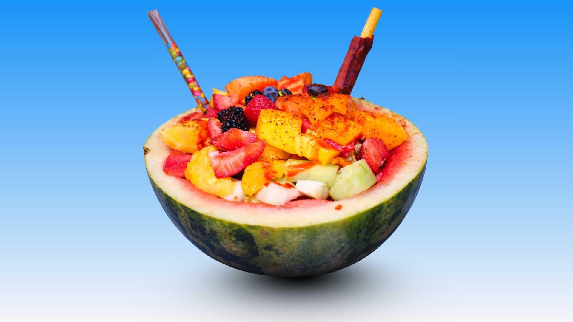 Elige entre mango, piña, sandía, melón, fresa, uvas, jícama, pepino y arándanos.